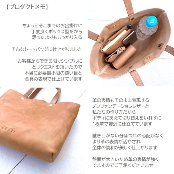 1枚革 シンプル トートバッグ ( ボックスサイズ ) / レザーバッグ バッグ ・ Non-Foundation Leather 「 nfl hnd 」 BASE店 受注生産 納期2~4週